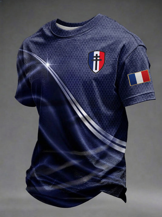 T-shirt Homme Imprimé Drapeau Belge Rayé à Manches Courtes