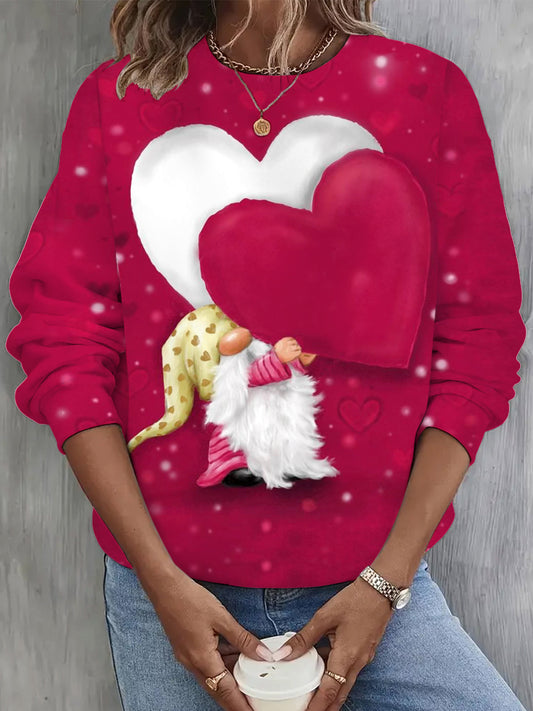 Valentine Gnome with Heart Print Long Sleeve Casual Top
