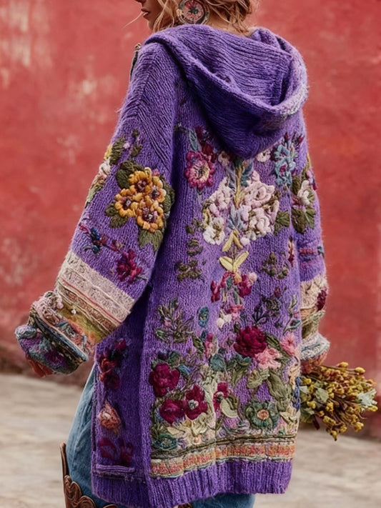 Sweat à Capuche Femme Imprimé Floral Bohémien à Cordon