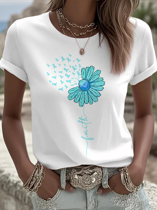 Teal ruban tournesol impression cancer de l'ovaire de sensibilisation des femmes Tee