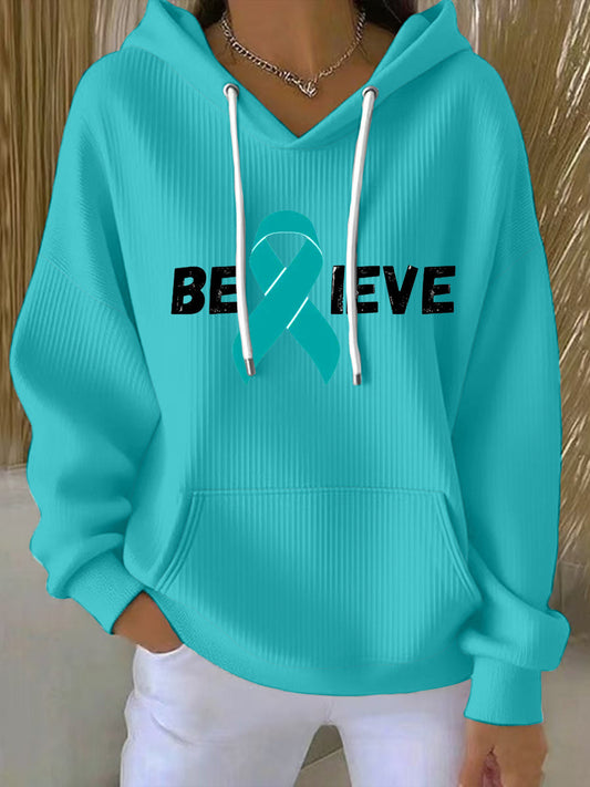 Sweat à capuche Femme Teal Ribbon Believe Ovarian Cancer Awareness
