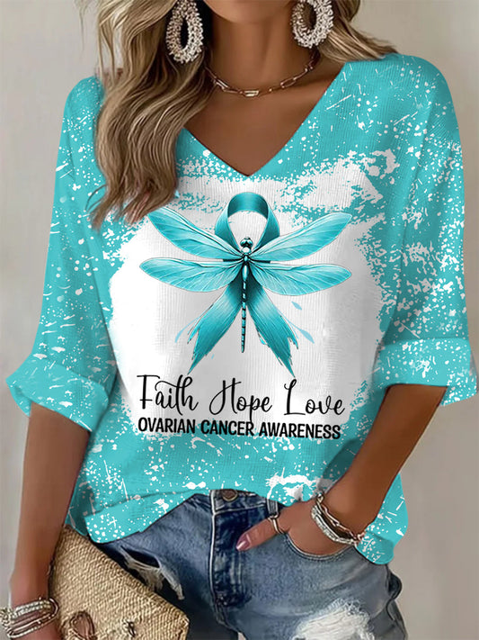 Sensibilisation au cancer de l'ovaire à imprimé libellule pour femmes