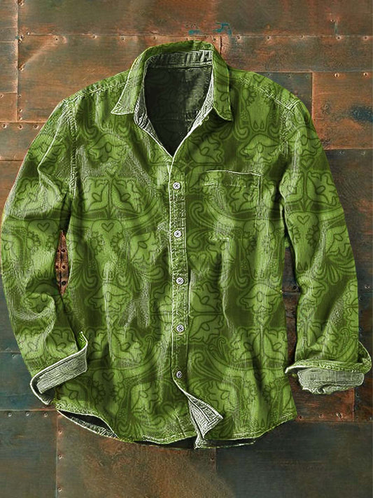 Chemise à manches longues décontractée imprimée ethnique rétro pour hommes