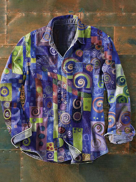 Chemise décontractée à manches longues vintage art abstrait imprimé