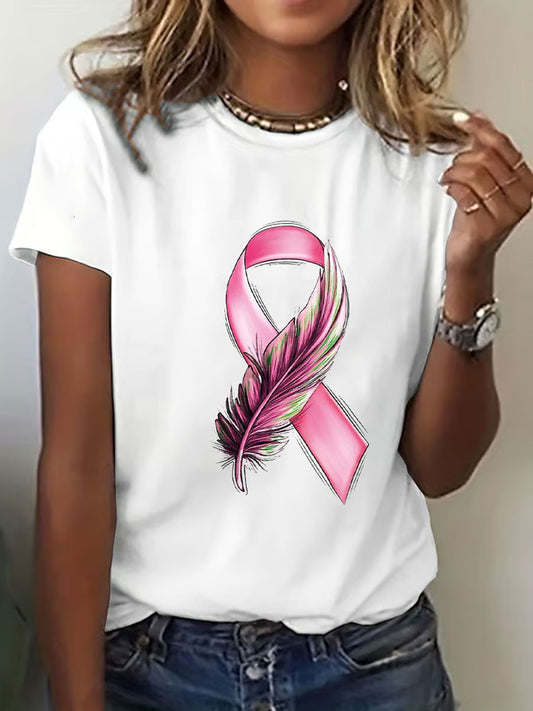 T-shirt Décontracté Femme Imprimé Ruban Rose