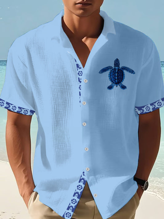 Chemise à manches courtes décontractée Turtle Print pour homme