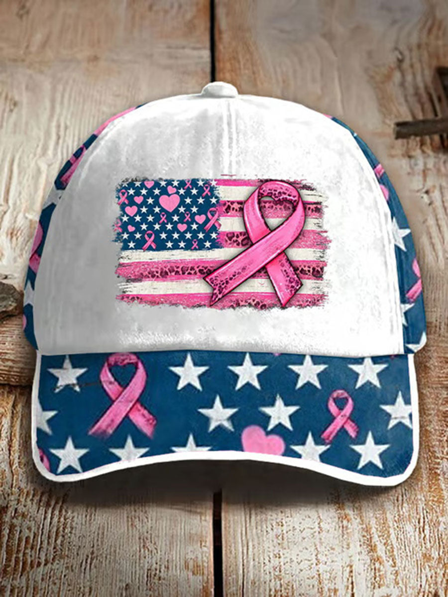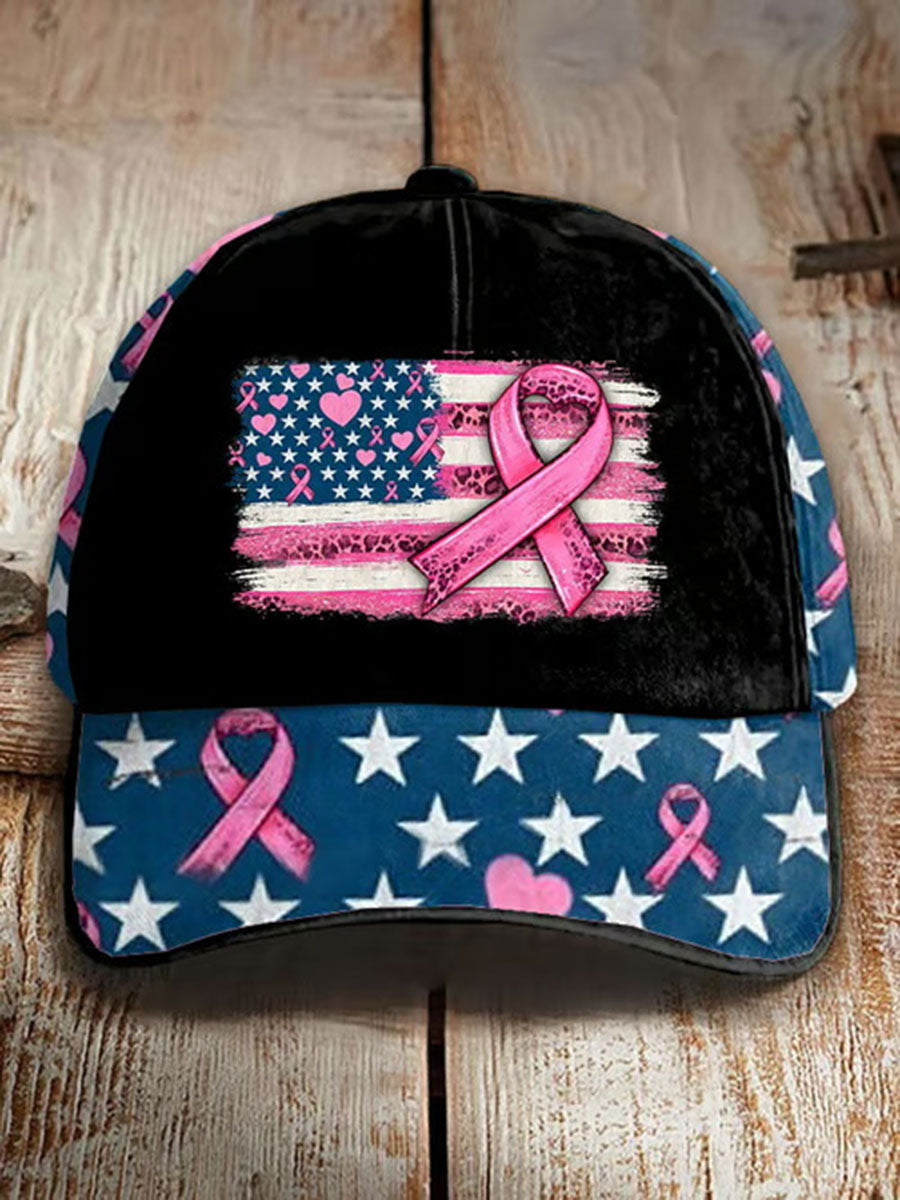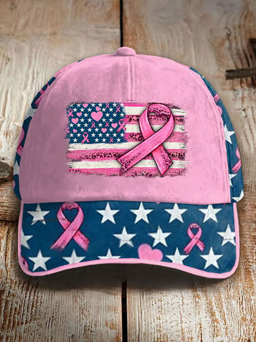 Chapeau unisexe décontracté à imprimé ruban rose sensibilisation au cancer du sein