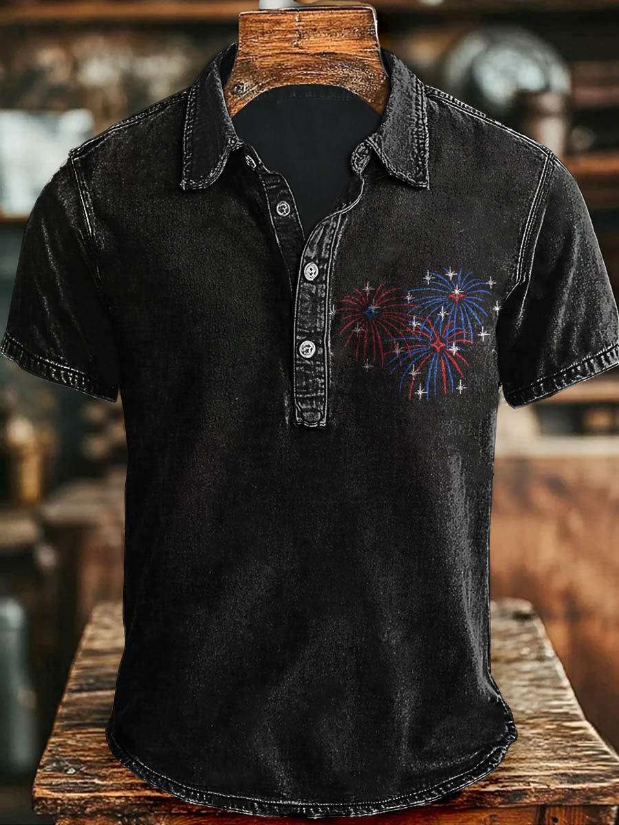 Polo à manches courtes décontracté à imprimé feu d'artifice avec drapeau du jour de l'indépendance