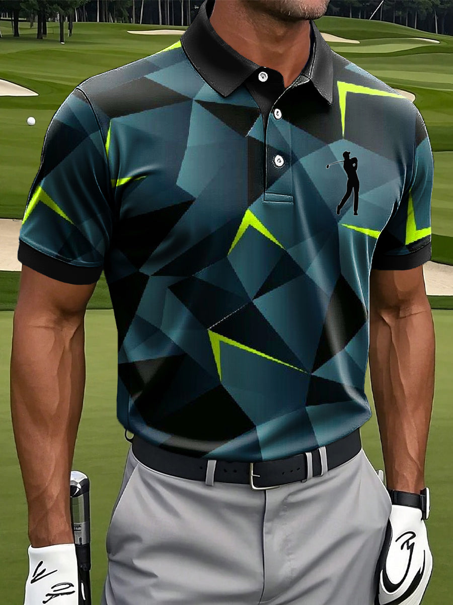 Polo d'affaires décontracté à imprimé géométrique irrégulier pour hommes
