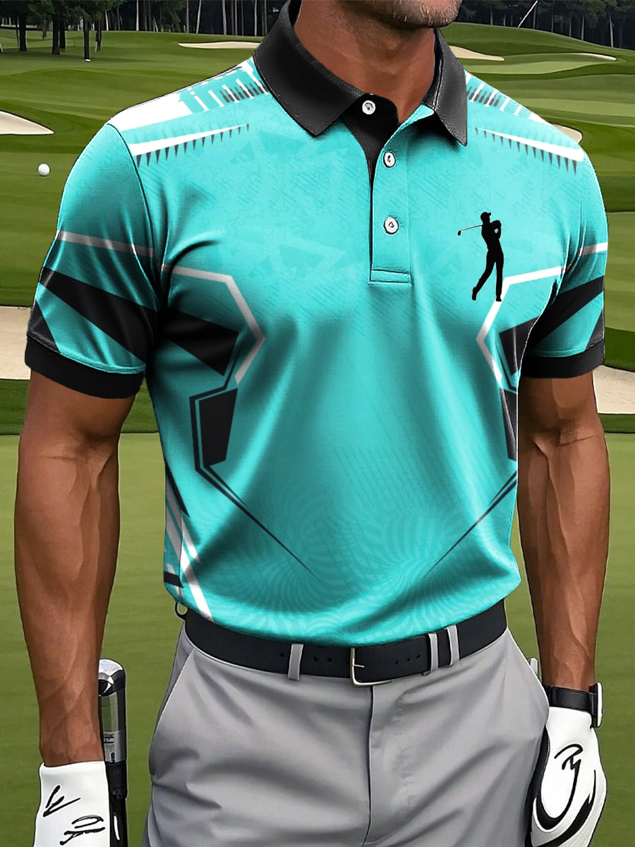Polo d'affaires décontracté à imprimé géométrique ligne abstraite pour hommes