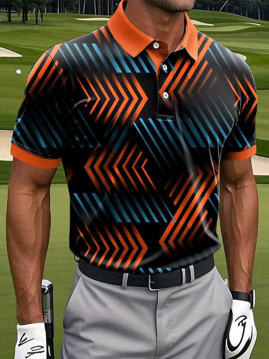 Polo d'affaires décontracté à imprimé ligne irrégulière multicolore rétro pour hommes