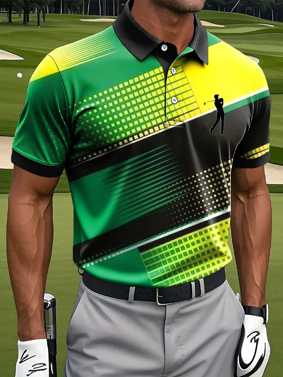 Polo d'affaires décontracté imprimé ligne géométrique abstraite pour hommes