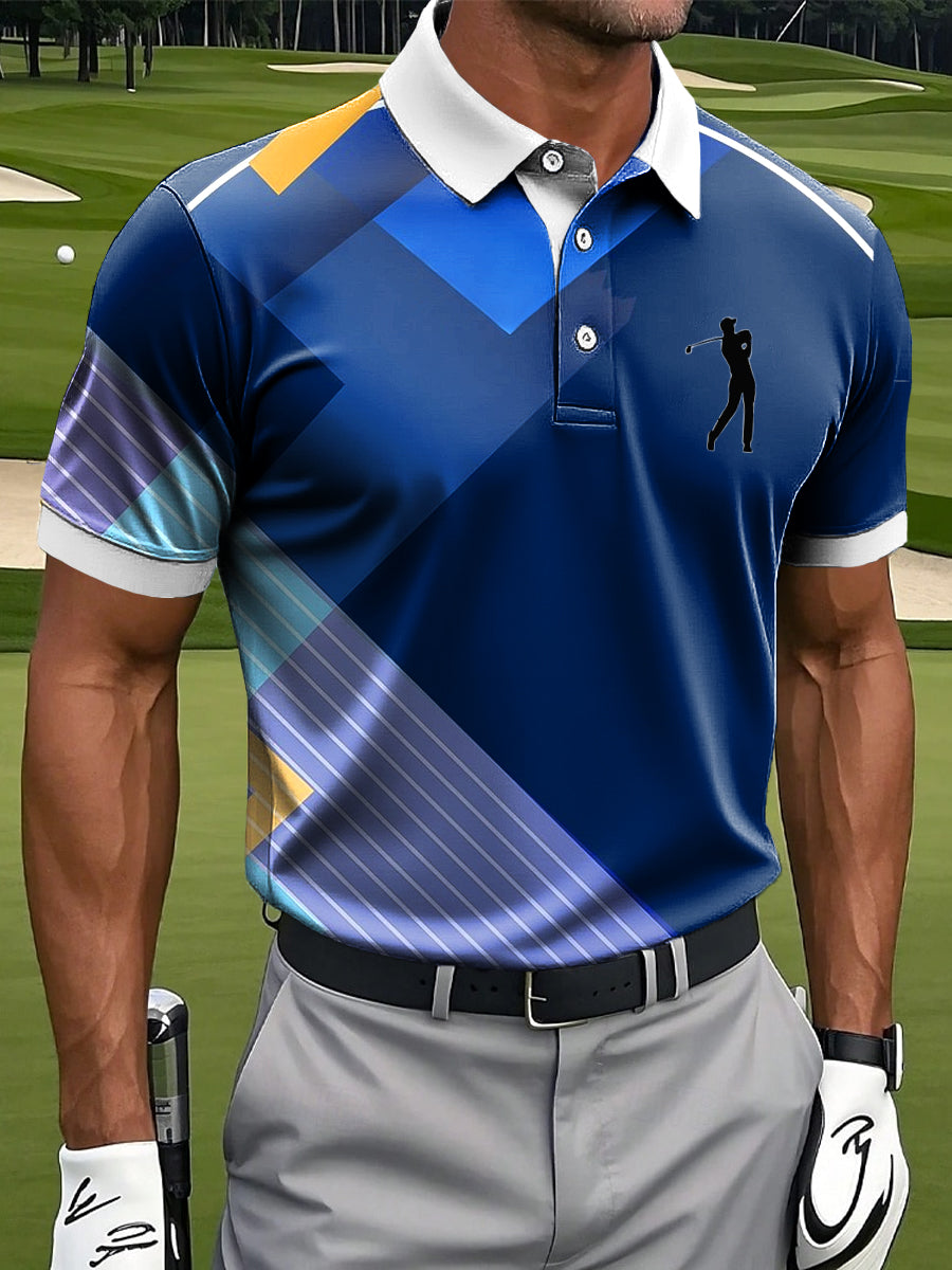 Polo décontracté d'affaires à rayures géométriques à imprimé abstrait pour hommes