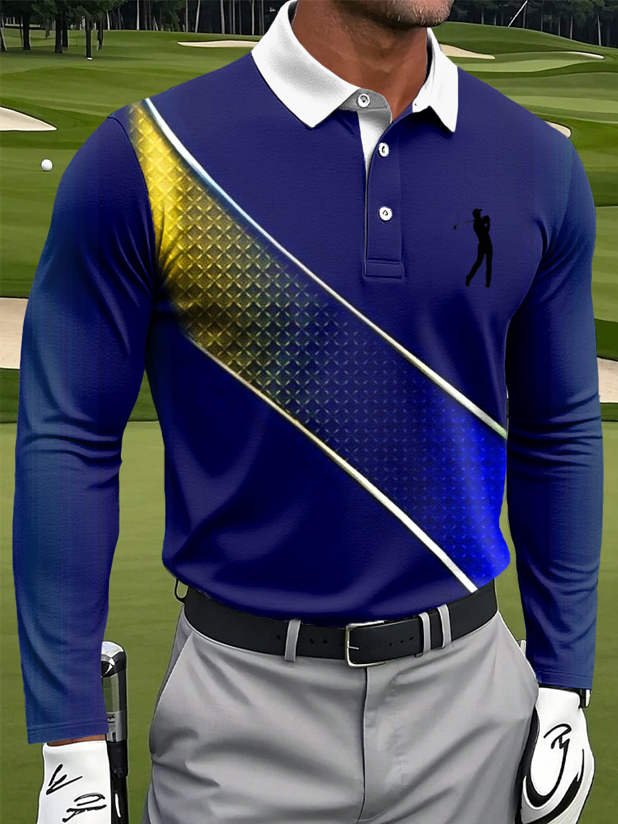 Retro Striped Texture Gradient Art Print Casual Business Polo à manches longues pour hommes