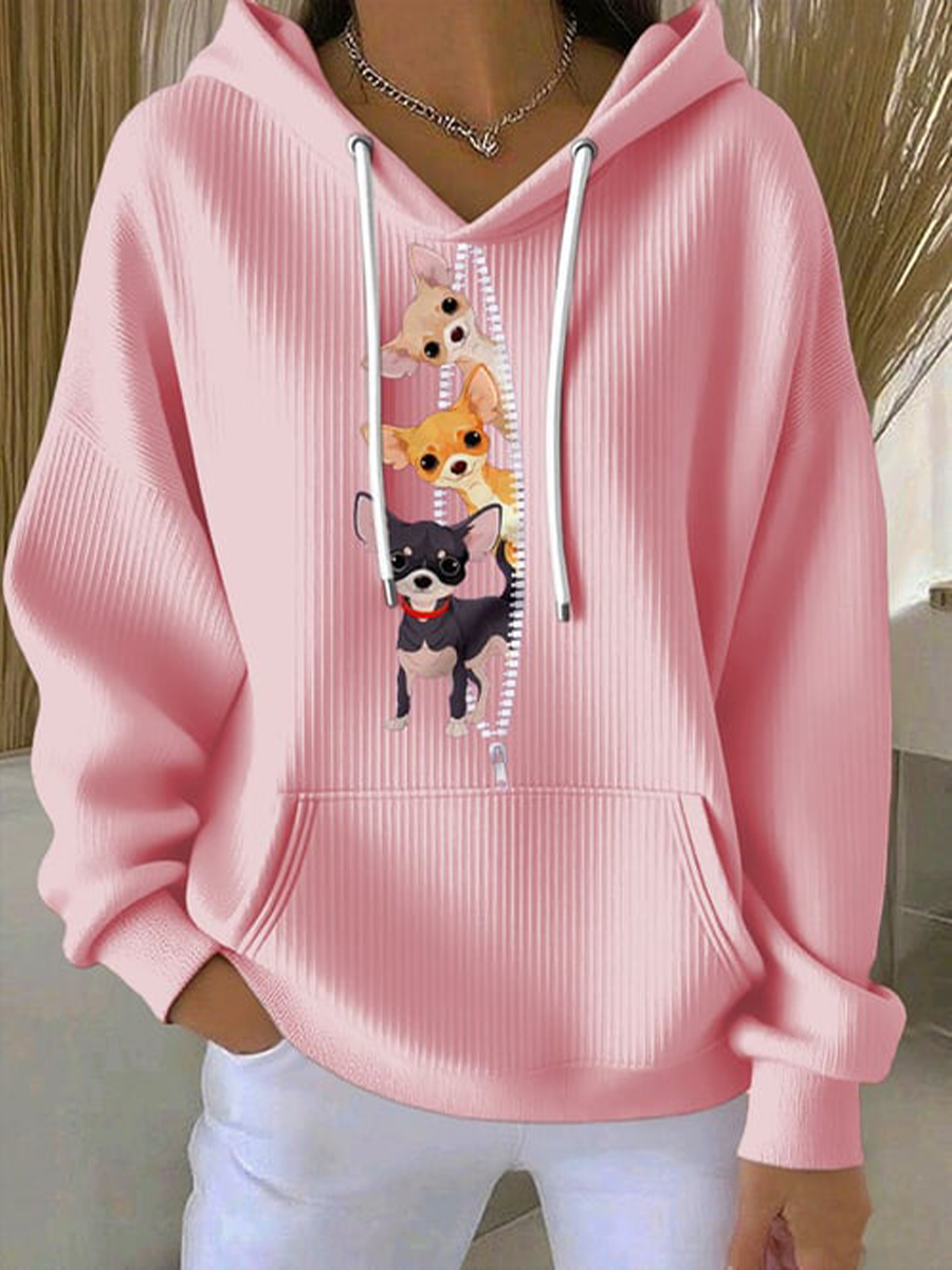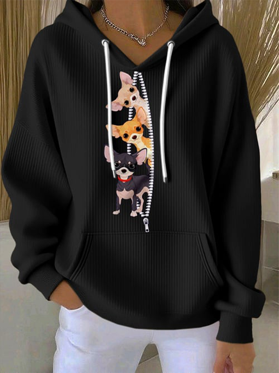 Sweat à capuche décontracté à imprimé chihuahuas pour femmes