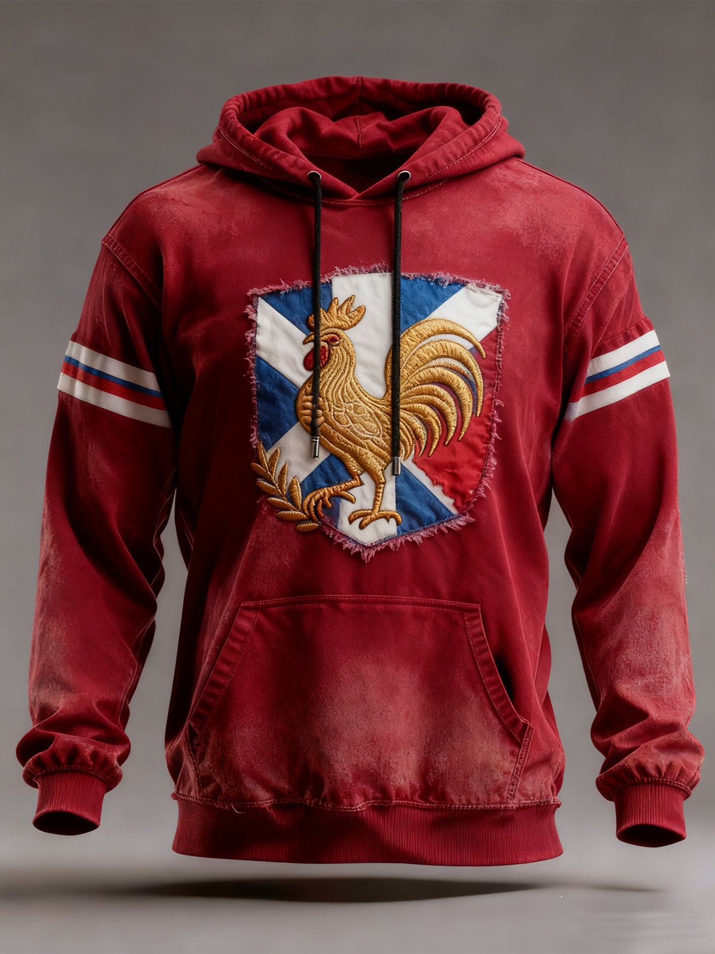Sweat à capuche surdimensionné à épaules dénudées avec poches pour hommes, drapeau français vintage