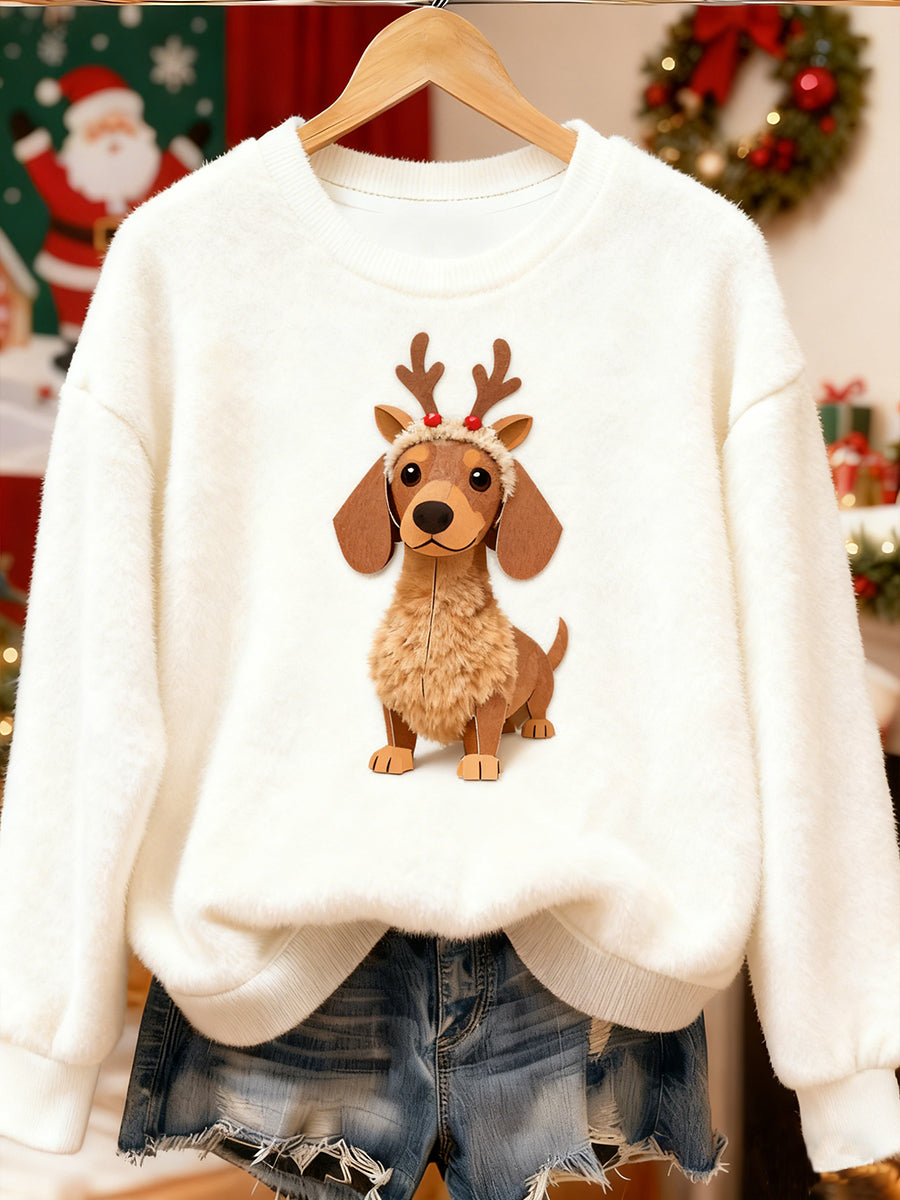 Sweat-shirt à manches longues décontracté à motif de teckel de Noël
