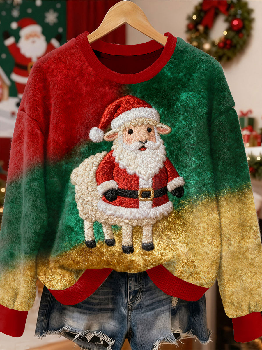 Sweat-shirt Décontracté à Manches Longues Motif de Mouton de Noël