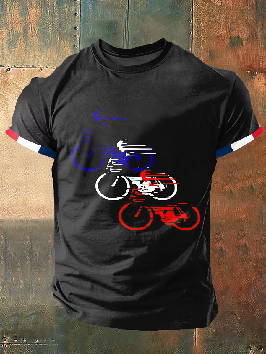T-shirt à manches courtes French Bike Print Vintage Fashion pour hommes