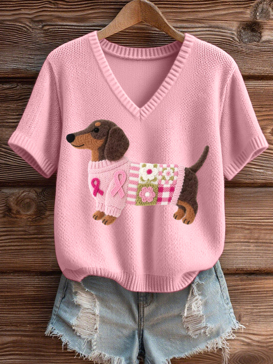 Top confortable en tricot à motif de teckel en feutre pour femmes