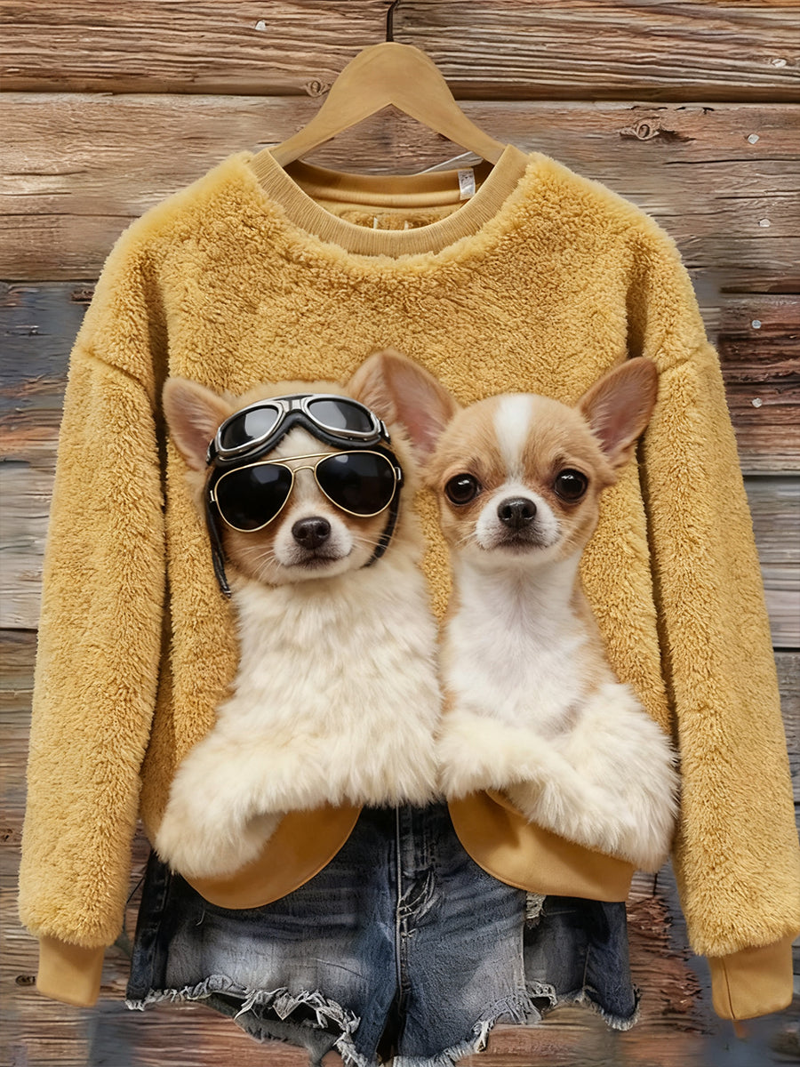 Top Décontracté en Flanelle Imprimé Art de Noël Animal Rétro Femme