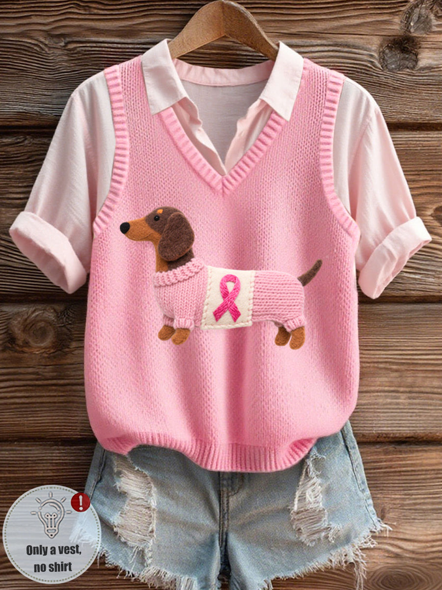 Veste en tricot confortable motif teckel en feutre pour femmes